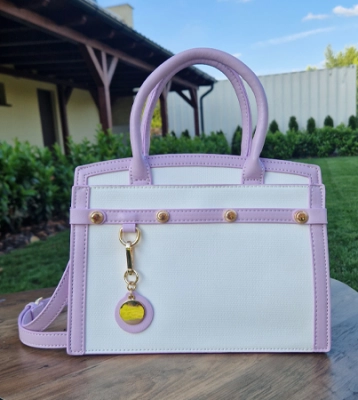 Menbur torebka biała klasyczna z liliową lamówką