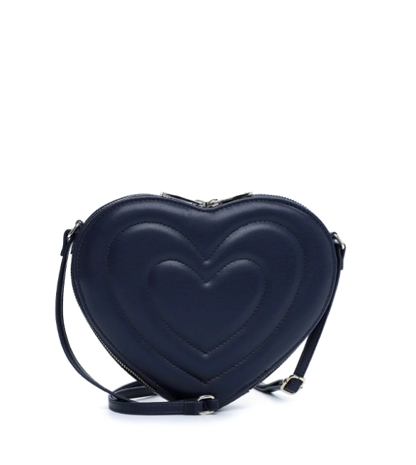- Granatowa torebka w kształcie serca- mała, zgrabna listonoszka na ramię w modnym kolorze. Idealna jako crossbody na co dzień. Lekka, z regulowanym paskiem, zapinana na zamek. Doda uroku każdej stylizacji i świetnie sprawdzi się jako prezent.